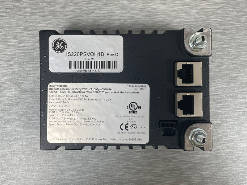 GE IS220PSVOH1A is a servo control module for GE Mark VI or Mark VIe systems, belonging to the GE Speedtronic series. technical specifications Model: IS220PSVOH1A. Brand: GE (General Electric). Series: Mark VIe. Function: Servo control component used for controlling steam and gas turbine systems. Interface: Provide one or two I/O Ethernet interfaces for connecting to TSVO servo terminal boards. There are multiple LED indicator lights on the front panel, including four LEDs (ENet1/Enet2) for displaying the status of two Ethernet networks, as well as Power and Attn LEDs, and two ENA1/2 LEDs. Power supply: The input voltage range is 120/240VAC, the output voltage is 24VDC, and the output current can reach 10A. Size: 8.26cm × 4.19cm × 12.1cm. Weight: Approximately 1.2 kilograms. Working temperature range: -30 ° C to 65 ° C. Control function: Supports multiple control modes such as position control, speed control, and force control. Accuracy: up to 0.1%, resolution up to 0.01%. Protection function: equipped with overcurrent protection, overvoltage protection, etc. Application scenarios Industrial automation: used for equipment control in manufacturing, energy, water treatment, chemical, power and other fields. Steam and gas turbine system: controls the operation of steam and gas turbines. Process control: Achieving precise monitoring and control of industrial processes. characteristic High reliability: The design, manufacturing, and testing processes are rigorous to ensure high reliability and stability. Efficiency: It can quickly collect and process input signals, improving the efficiency and response speed of the control system. Flexibility: It can be configured according to actual needs and has multiple functional options. Easy to install and debug: Use the Control System Toolbox application for configuration, supporting automatic reconfiguration functionality. Protection function: It has multiple protection functions to ensure stable operation under harsh working conditions.