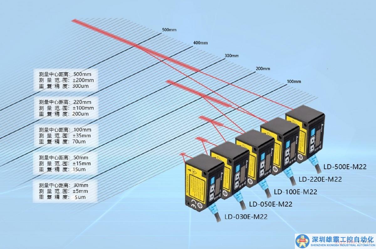 激光位移傳感器LD-E系列包含五種型號(hào),檢測(cè)范圍從25mm到700mm,可以依據(jù)使用者的不同需求,靈活選用。此外,LD-E在測(cè)量精度上亦有良好的表現(xiàn),重復(fù)精度低至5 μm,線性度可達(dá)± 0.1% F.S,可滿足多數(shù)使用環(huán)境的精度要求。