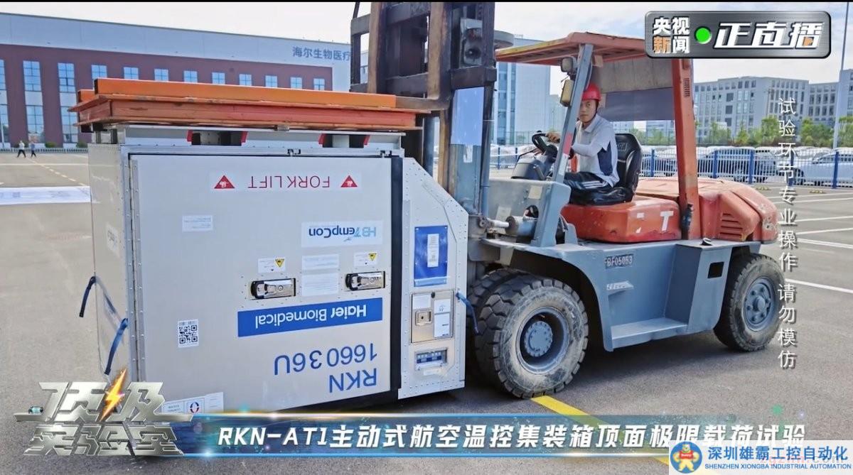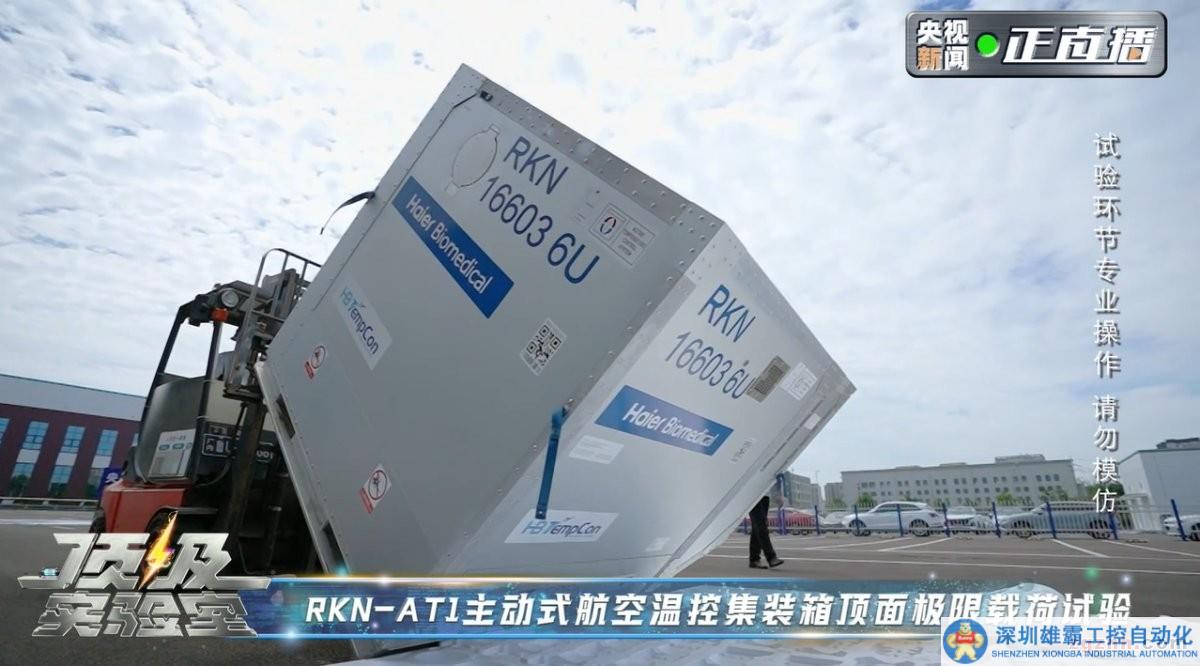在海爾生物醫(yī)療檢測(cè)技術(shù)中心,“磕科團(tuán)”現(xiàn)場(chǎng)參與主動(dòng)式航空溫控集裝箱極限載荷試驗(yàn),分別進(jìn)行了3.4噸載荷下,箱體傾斜45度,箱體背(側(cè))面承重能力測(cè)試;以及4.4噸載荷下,箱體凌空,頂面承重能力測(cè)試。