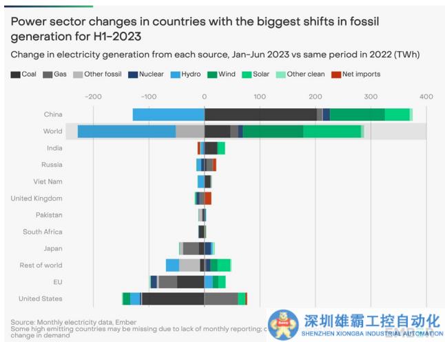 由于水力發(fā)電創(chuàng)下歷史最大降幅,中國的電力行業(yè)排放上升了7.9%。