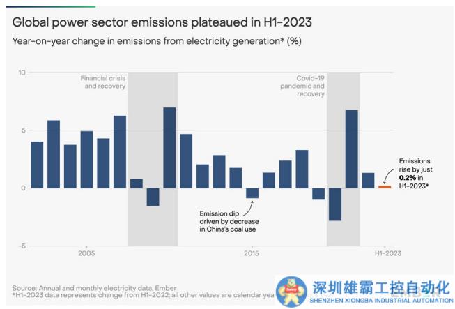 全球電力行業(yè)碳排放趨于穩(wěn)定:2023年上半年,來自電力行業(yè)的全球排放僅增加了0.2%(約1200萬噸二氧化碳)。