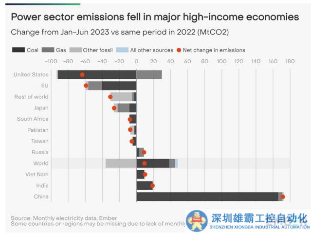 印度的排放增長較慢,2023年上半年增長了3.7%,而去年同期增長了9.7%。