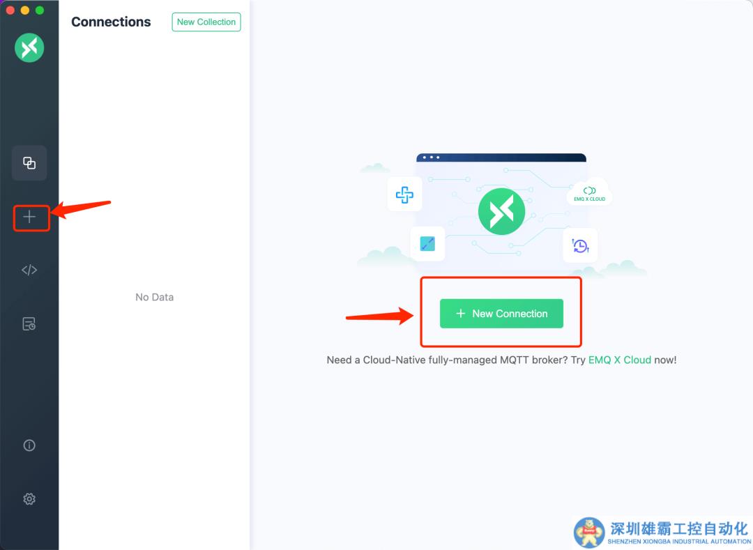 打開軟件,點擊左側(cè)菜單欄的?“+”?按鈕。如果頁面為空,也可直接點擊右側(cè)的?+ New Connection來快速設(shè)定新的客戶端連接。