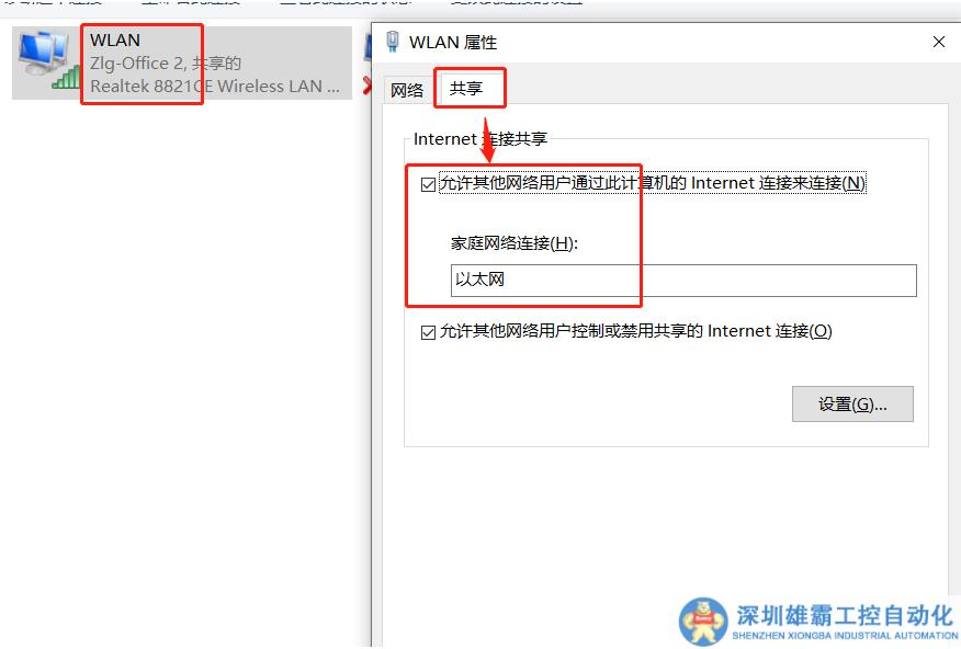 將PC上的WLAN配置為共享給以太網(wǎng)。