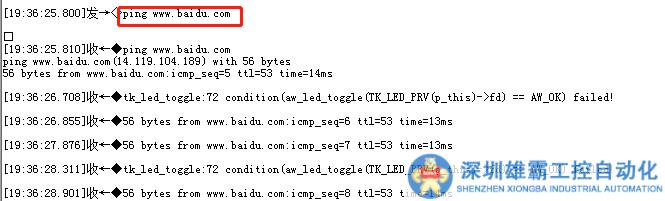 在串口調(diào)試助手輸入shell指令ping www.baidu.com,ping成功即開發(fā)板聯(lián)網(wǎng)成功。