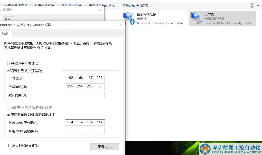 因為AWFlow的mqtt節(jié)點是客戶端節(jié)點,而訪問的mqtt代理地址broker.emqx.io是需要流量的,所以需要通過PC電腦共享網(wǎng)絡(luò)給開發(fā)板上網(wǎng)。配置PC上的以太網(wǎng)的IP與開發(fā)板的IP地址在同一局域網(wǎng)下。