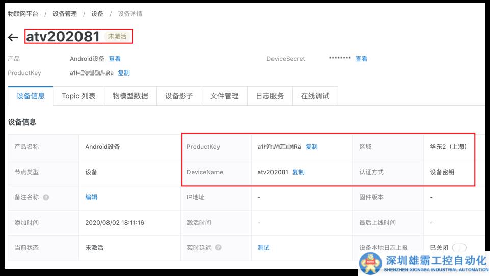 4.注冊設(shè)備,此時設(shè)備為未激活狀態(tài)。