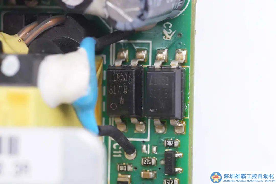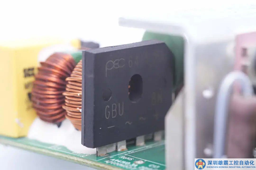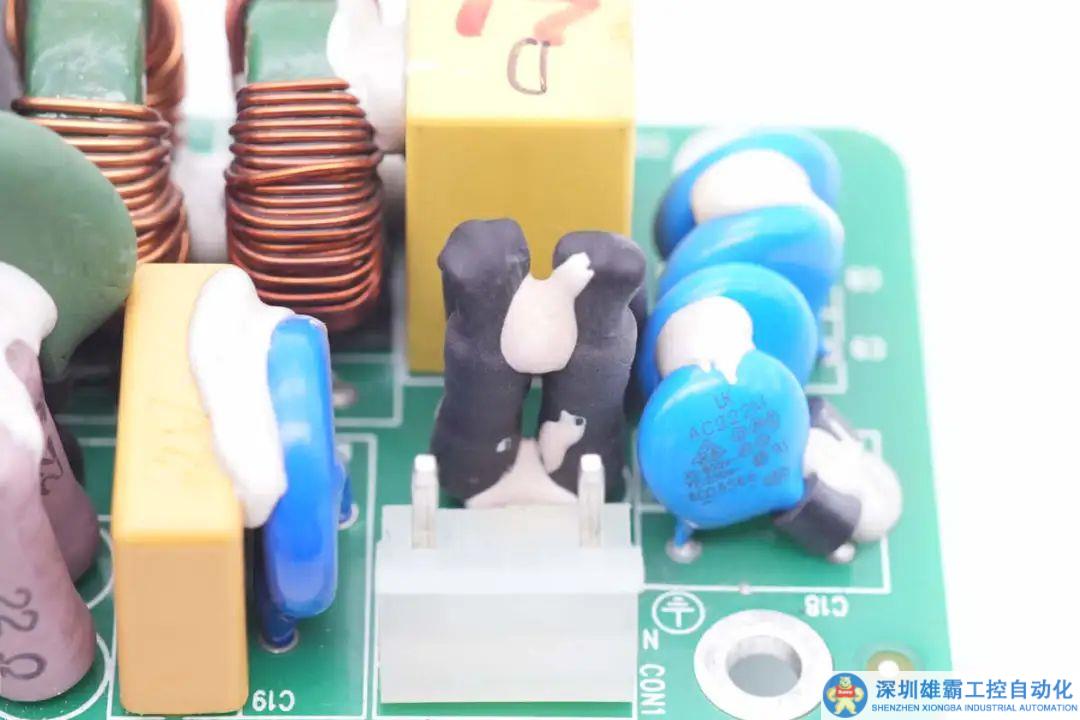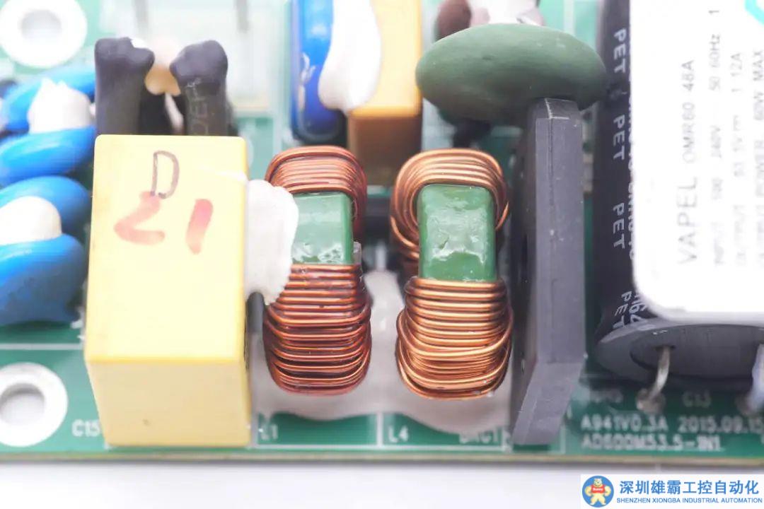 側(cè)面可以看到共模電感,濾波電容以及變壓器等元件。