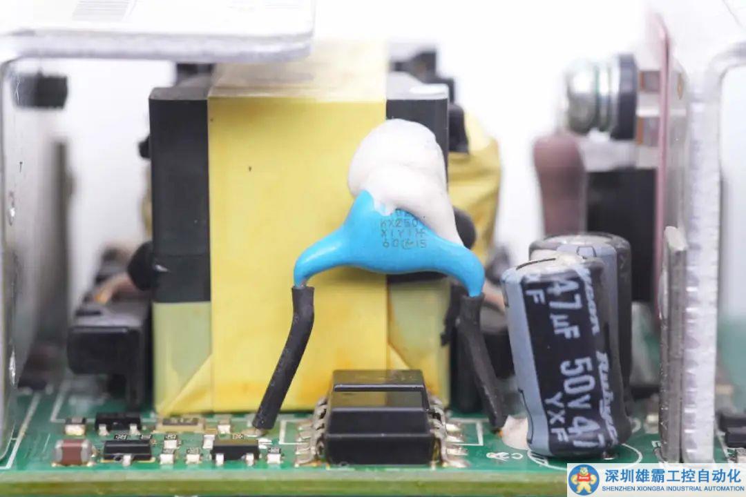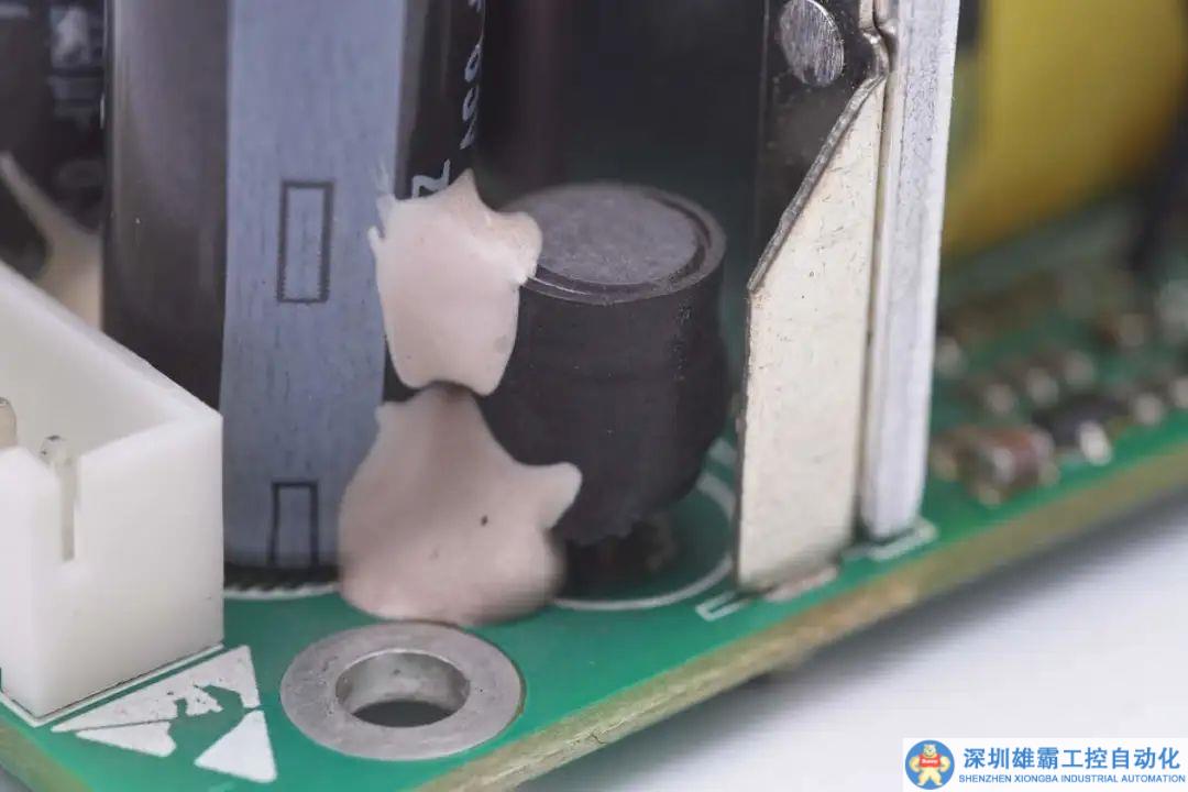 Y電容引腳外套熱縮管絕緣,并采用膠水固定。