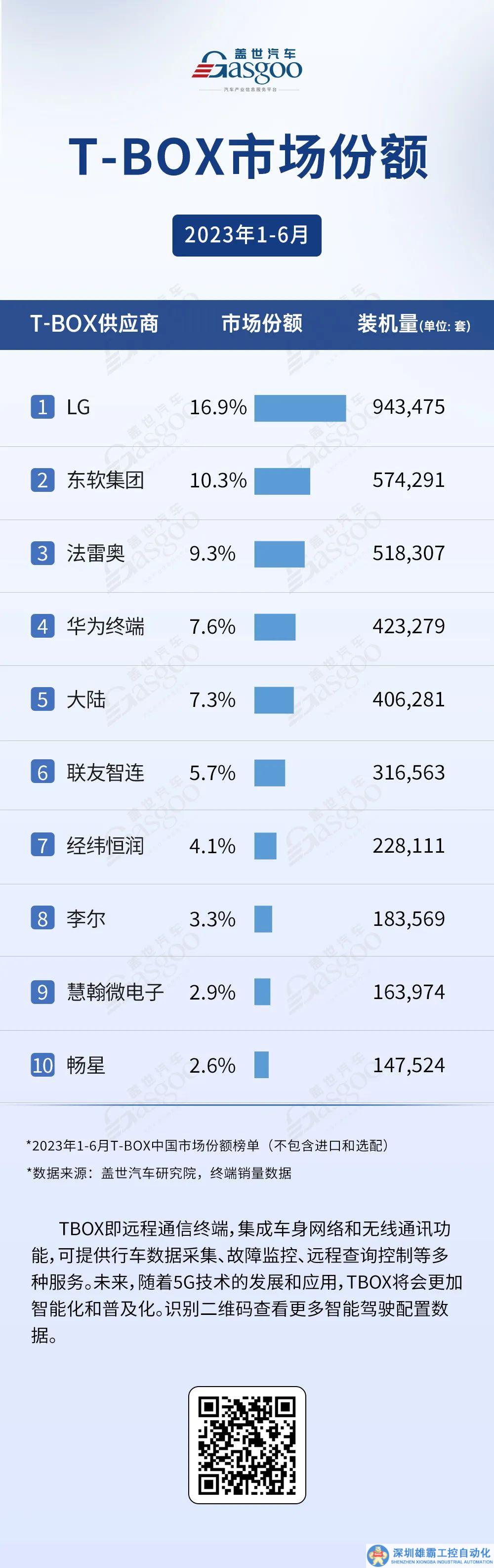 在中國(guó),5G網(wǎng)絡(luò)建設(shè)的推進(jìn)和5G通信模組的應(yīng)用落地都在加速進(jìn)行。在5G網(wǎng)絡(luò)的高傳輸效率賦能下,T-BOX不僅可實(shí)現(xiàn)車聯(lián)網(wǎng)的基本功能,還具備網(wǎng)聯(lián)控制功能,可以實(shí)現(xiàn)車端-云端-路端等各參與方的互聯(lián)互通與實(shí)時(shí)通信,從而進(jìn)一步提升車輛與道路交通的智能化水平。在5G網(wǎng)絡(luò)快速發(fā)展的推動(dòng)下,T-BOX產(chǎn)品將得到更廣泛的應(yīng)用?;诖吮尘埃w世汽車推出2023版T-BOX供應(yīng)鏈報(bào)告,希望帶大家了解更多T-BOX行業(yè)的情況信息。