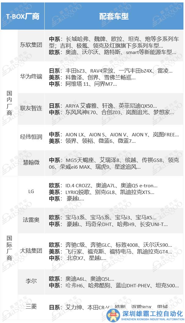 國(guó)內(nèi)T-BOX市場(chǎng)上,國(guó)外供應(yīng)商對(duì)歐系、美系車等整車市場(chǎng)把控力較強(qiáng),但本土供應(yīng)商與國(guó)外供應(yīng)商之間并非不可逾越的鴻溝,部分國(guó)內(nèi)優(yōu)秀供應(yīng)商已有趕超之勢(shì),典型企業(yè)包括: