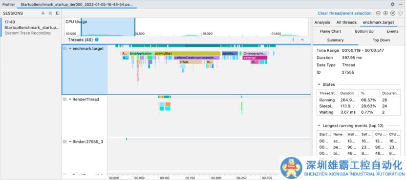 跟蹤文件加載完成后,Studio將在CPU性能剖析器工具中顯示結(jié)果: