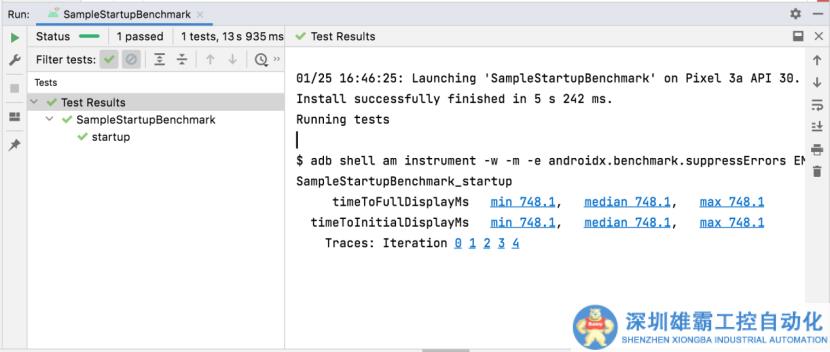 基準(zhǔn)運(yùn)行成功后,指標(biāo)會(huì)直接顯示在Android Studio中,還會(huì)以JSON文件形式輸出以供持續(xù)集成環(huán)境使用。