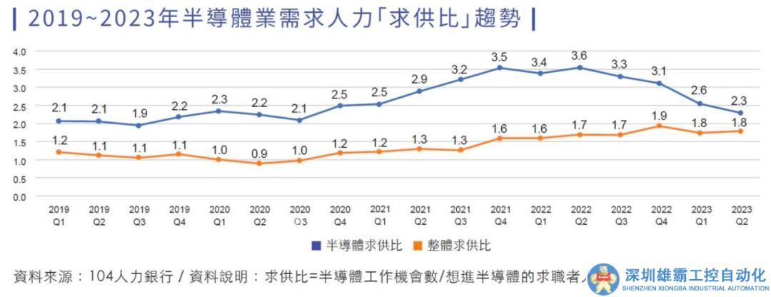 事實上,由于行業(yè)景氣度大幅下降,不僅是校招,社招也處于冬眠期,很多企業(yè)都凍結了招聘,且這種情況并非中國大陸市場獨有,根據中國臺灣104人力銀行于2023年9月公布的《半導體產業(yè)人才白皮書》,臺灣地區(qū)半導體人才需求在2022年第二季度達到頂峰之后,近幾個季度一直在下降通道中,2023年二季度人才需求同比下降了37.5%。
