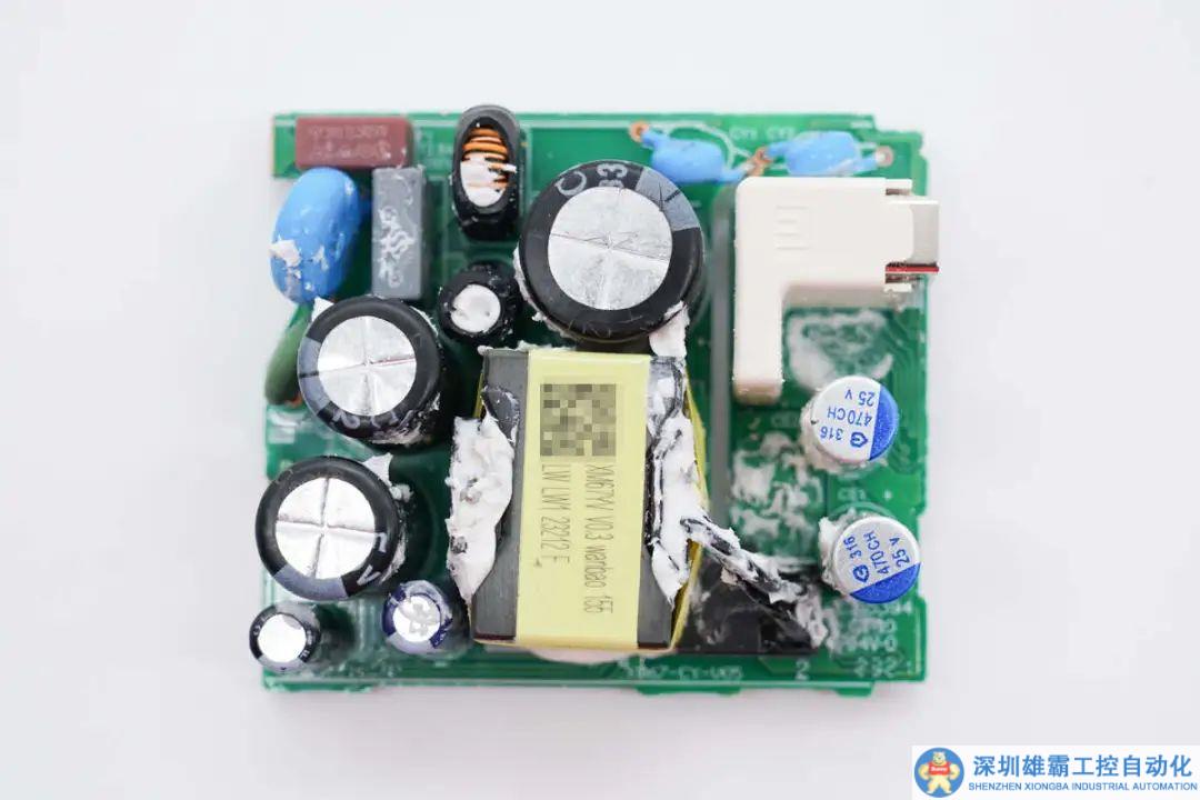 首先拆下輸出側(cè)蓋板,內(nèi)部PCBA模塊采用膠水固定在殼體內(nèi)部,無法取出,使用切割機(jī)切開外殼。