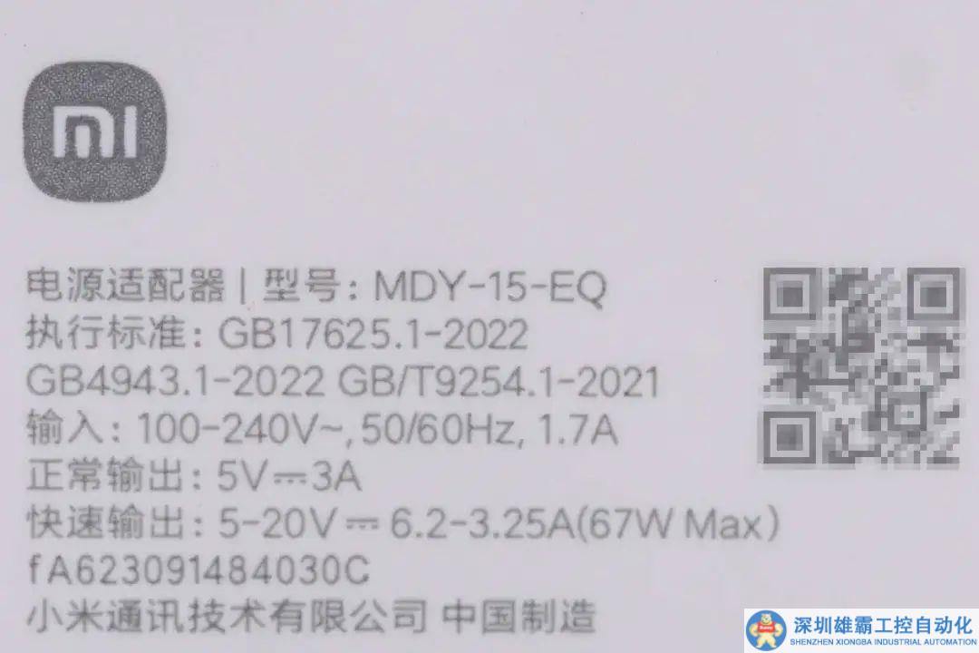 變壓器標(biāo)注XM67W字樣,表示用于小米67W充電器。