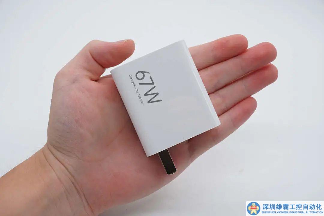 充電器延續(xù)此前的外觀設(shè)計(jì),腰身潔白光滑,各面間過渡圓潤(rùn),使用手感好。機(jī)身正背面均印有67W以及Designed by Xiaomi字樣。