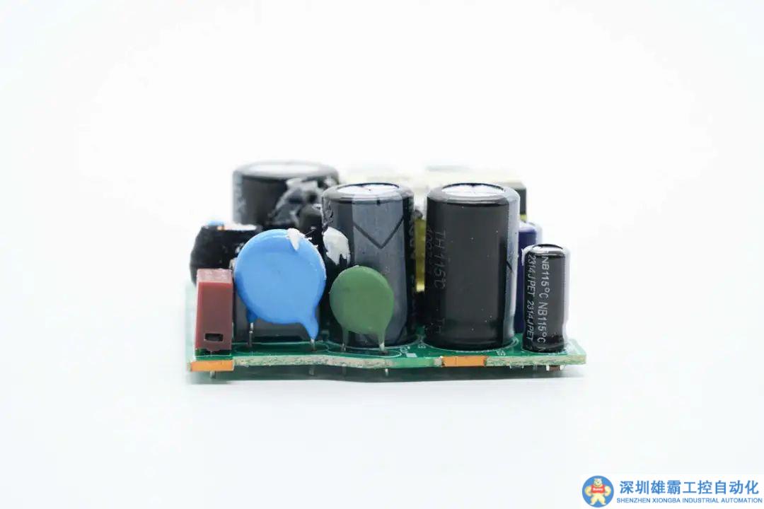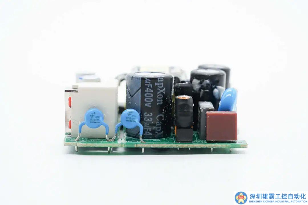 PCBA模塊輸入端一覽,焊接保險(xiǎn)絲,藍(lán)色壓敏電阻和綠色NTC熱敏電阻。