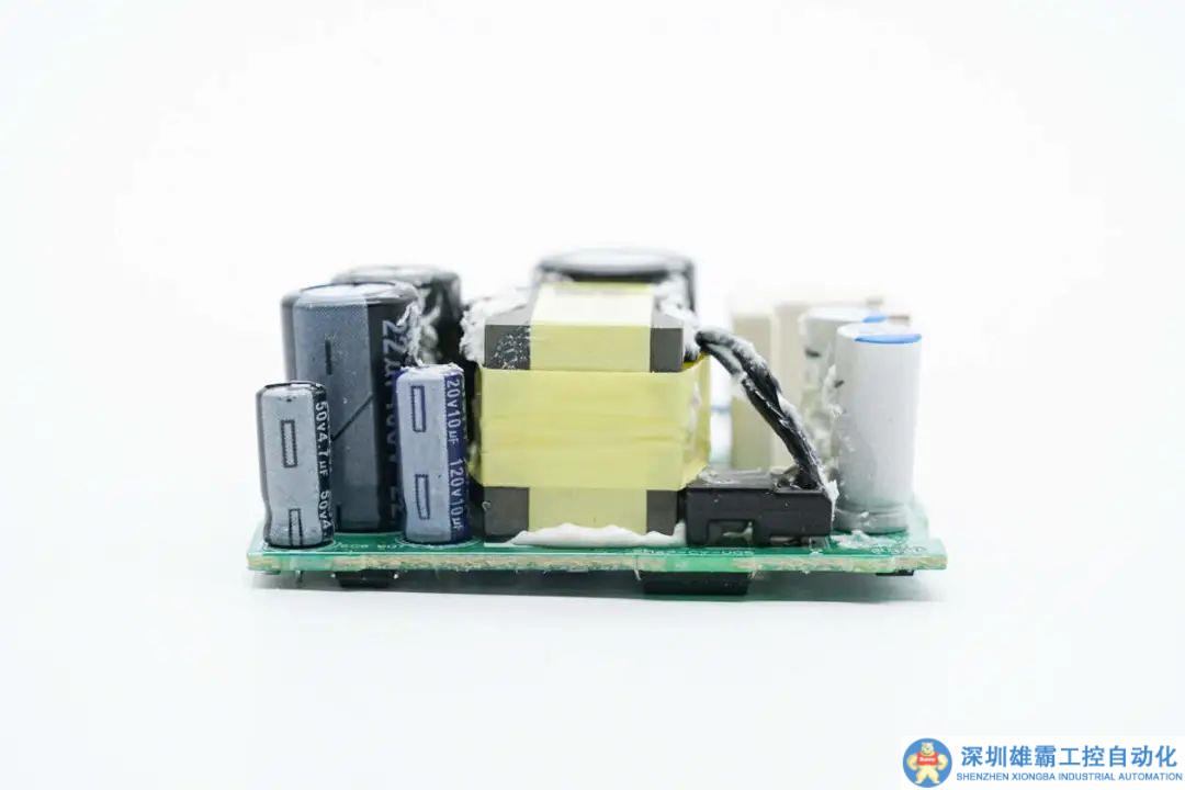 側(cè)面焊接兩顆插件Y電容,高壓濾波電容和共模電感。