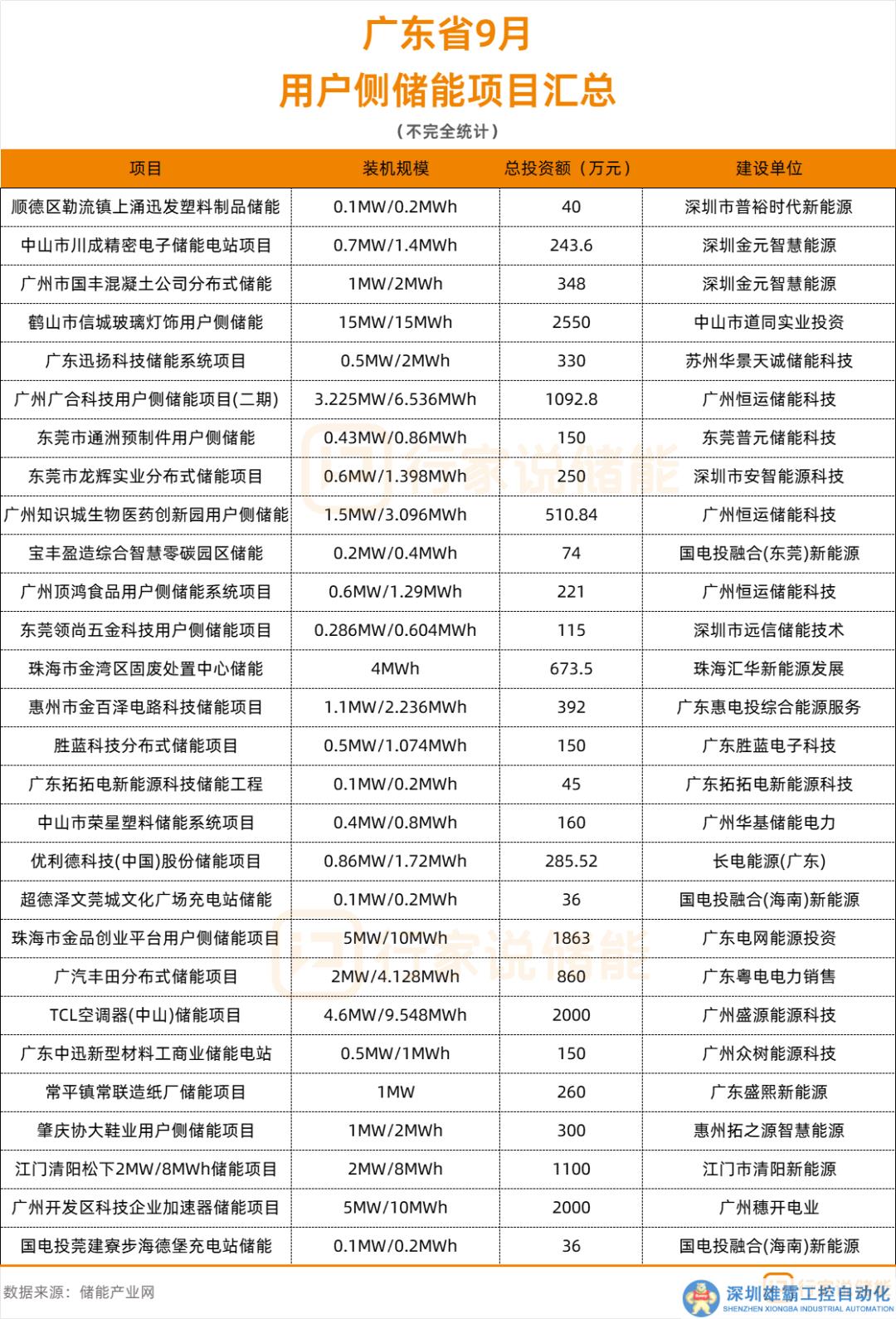 另據(jù)儲能產(chǎn)業(yè)網(wǎng)不完全統(tǒng)計,截至9月27日,廣東省9月用戶側(cè)儲能備案項目規(guī)模為48.401MW/89.9264MWh,項目數(shù)量有28個,總投資超1.6億。