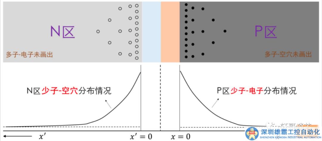 空穴由P區(qū)擴(kuò)散到N區(qū)后,并不是立即與N區(qū)中的電子復(fù)合而消失,而是在一定的擴(kuò)散長(zhǎng)度內(nèi),一邊繼續(xù)擴(kuò)散,一邊與電子復(fù)合消失。