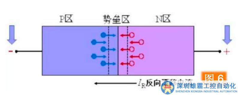 ① 在反向電場(chǎng)作用下,P區(qū)電子被拉回N區(qū),N區(qū)空穴被拉回P區(qū),形成反向漂移電流IR,如圖 6所示;