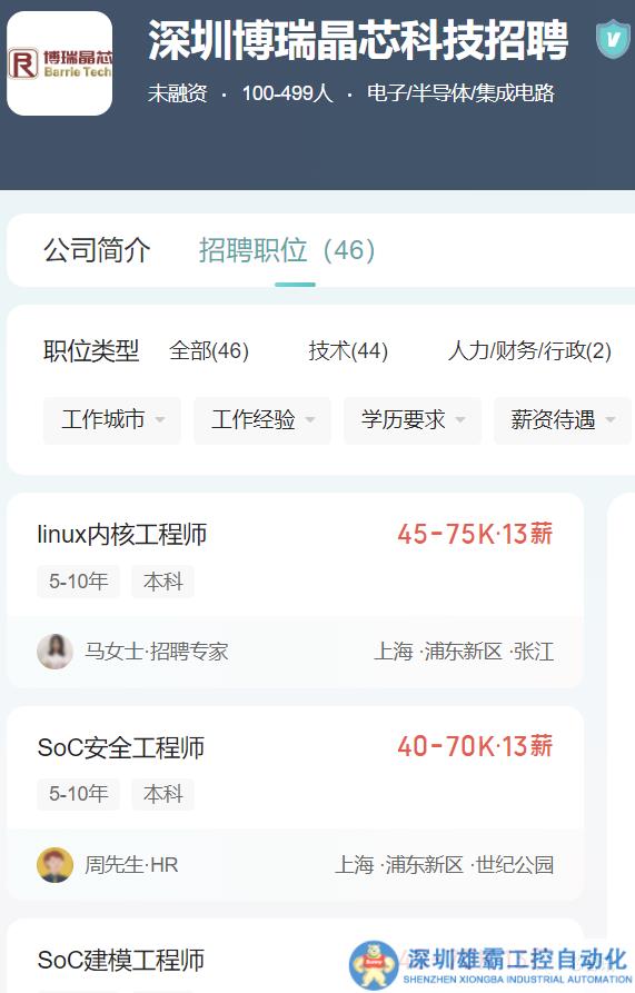 博瑞晶芯在今年2月獲得融資之后,還開啟了大規(guī)模的招聘。根據(jù)BOSS直聘上的信息來看,博瑞晶芯目前招聘的職位共有46個,其中技術類有44個。