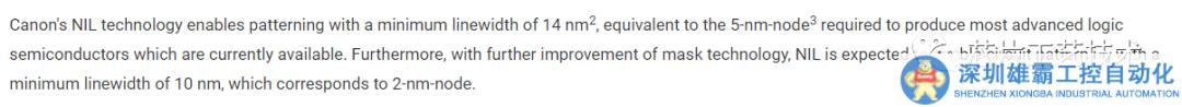 佳能據(jù)介紹,佳能的納米壓印光刻(Nano-Imprint Lithography,NIL)技術可實現(xiàn)最小線寬14nm的圖案化,相當于生產(chǎn)目前最先進的邏輯半導體所需的5nm節(jié)點。此外,隨著掩模技術的進一步改進,NIL有望實現(xiàn)最小線寬為10nm的電路圖案,相當于2nm節(jié)點。NanoimprintLithography(NIL),是一種新型的微納加工技術。該技術將設計并制作在模板上的微小圖形,通過壓印等技術轉移到涂有高分子材料的硅基板上。納米壓印的分辨率由所用印模板圖形的大小決定,物理上沒有光刻中的衍射限制,納米壓印技術可以實現(xiàn)納米級線寬的圖形。