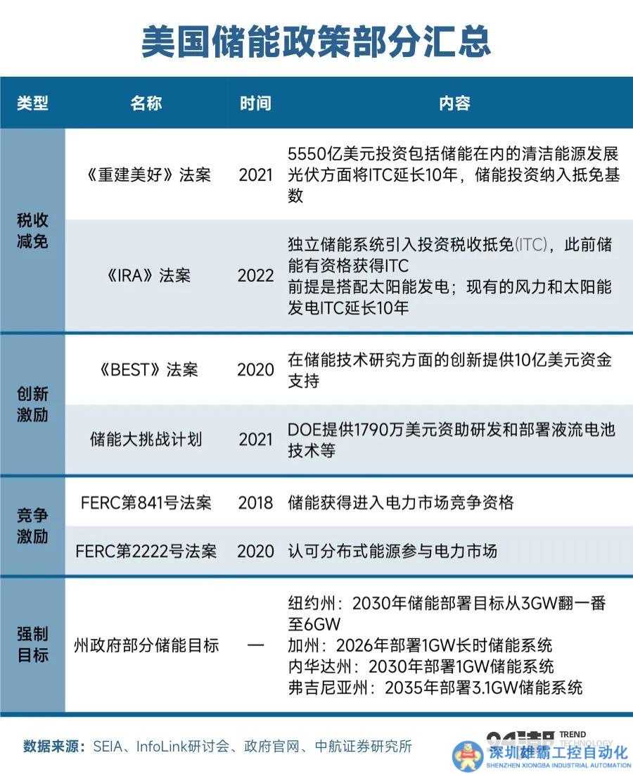 為了完成既定的戰(zhàn)略目標(biāo),美國政府一系列政策也正在向儲(chǔ)能傾斜。比如美國2021年頒布的《重建美好》法案,其中計(jì)劃耗資5550億美元投資包括儲(chǔ)能在內(nèi)的清潔能源發(fā)展;2022年其頒布的《IRA》法案更是確立電站儲(chǔ)能獨(dú)立補(bǔ)貼主體,并將光儲(chǔ)系統(tǒng)ITC稅收抵免額度由26%增至30%,這將進(jìn)一步提振美國表前儲(chǔ)能市場需求。