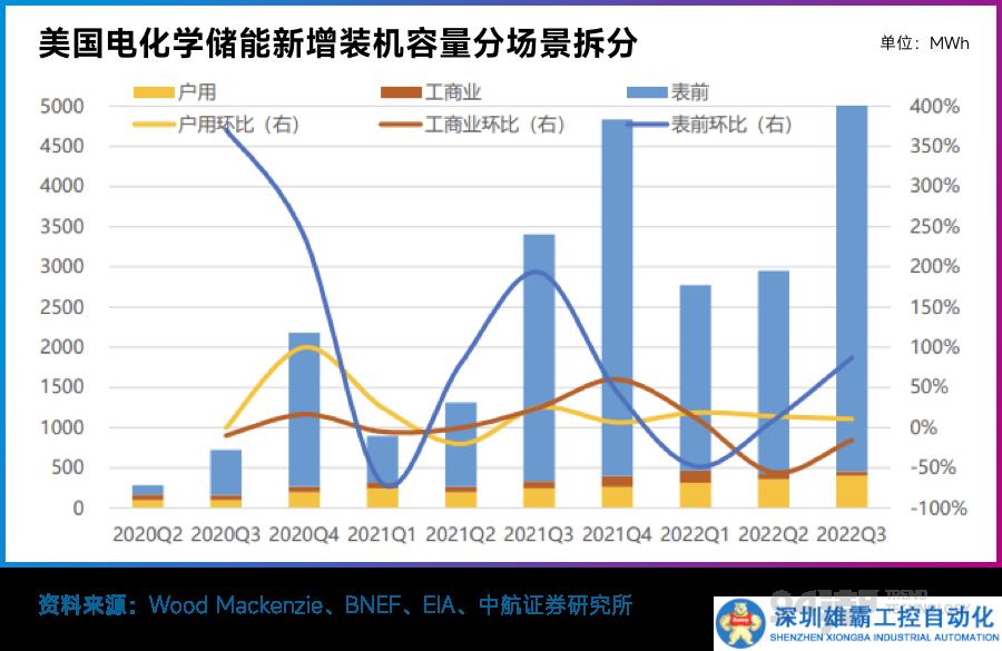 據(jù)CEAS發(fā)布的《2023中國新型儲(chǔ)能產(chǎn)業(yè)發(fā)展白皮書》數(shù)據(jù)顯示,2022年國內(nèi)新增儲(chǔ)能裝機(jī)量中表前大儲(chǔ)占比達(dá)91.4%,戶儲(chǔ)占比3.5%;Wood Mackenzie數(shù)據(jù)也顯示,2022年美國表前側(cè)儲(chǔ)能、戶用儲(chǔ)能以及工商業(yè)儲(chǔ)能占比分別約為84%、12%、4%,大儲(chǔ)也成為美國儲(chǔ)能市場發(fā)展的主要驅(qū)動(dòng)力。