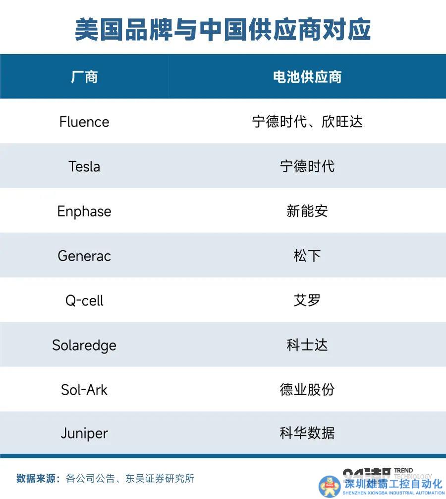 具體到美國市場,對于安全性、資質(zhì)要求嚴(yán)格,更信任本土品牌。根據(jù)IHSMarkit,2021年美國大儲(chǔ)集成商CR5達(dá)55%,F(xiàn)luence以18%排第一。2022H2美國戶儲(chǔ)CR3超75%,Enphase/Tesla/Solaredge占比40+/27/10%。國內(nèi)電池企業(yè)則主要通過美國伙伴供應(yīng)商體系進(jìn)入美國本土市場。比如特斯拉主要采用寧德100Ah方形電池;Enphase采用新能安52Ah軟包電池。
