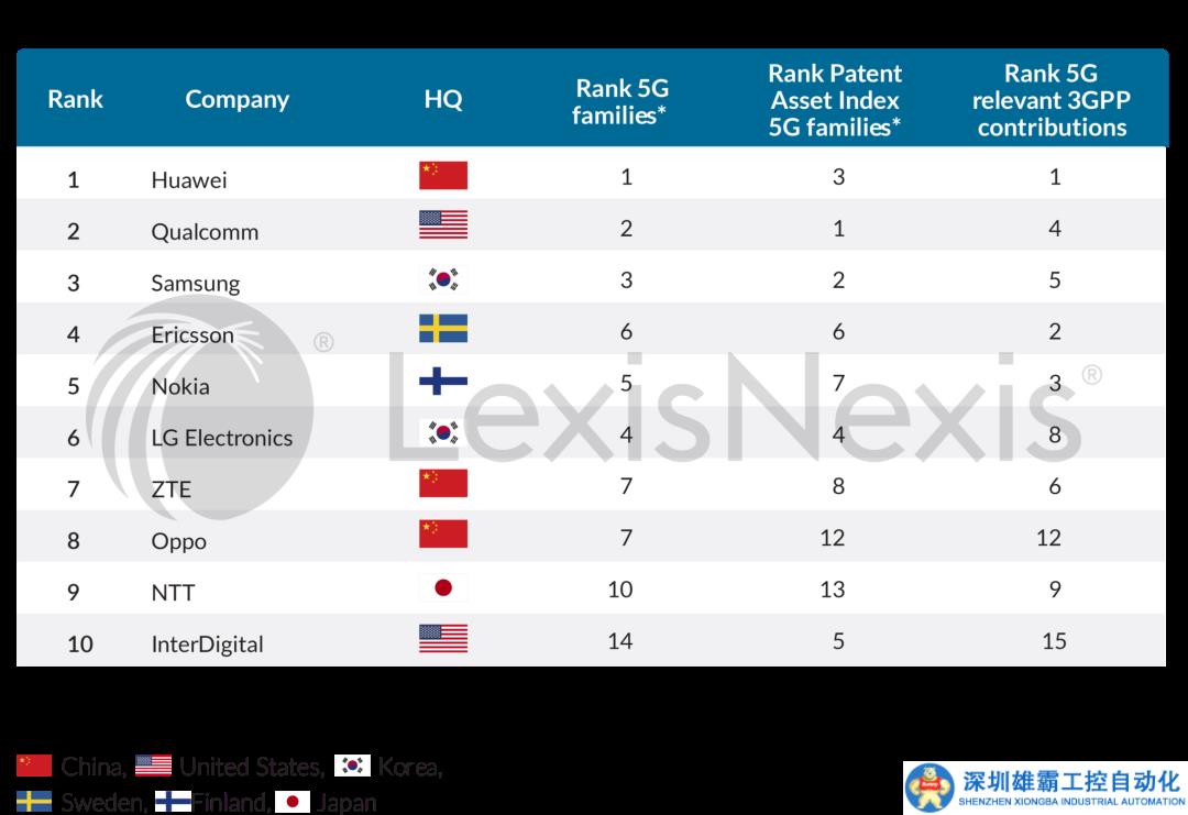 ▲全球5G專利擁有量排名,來源:LexisNexis