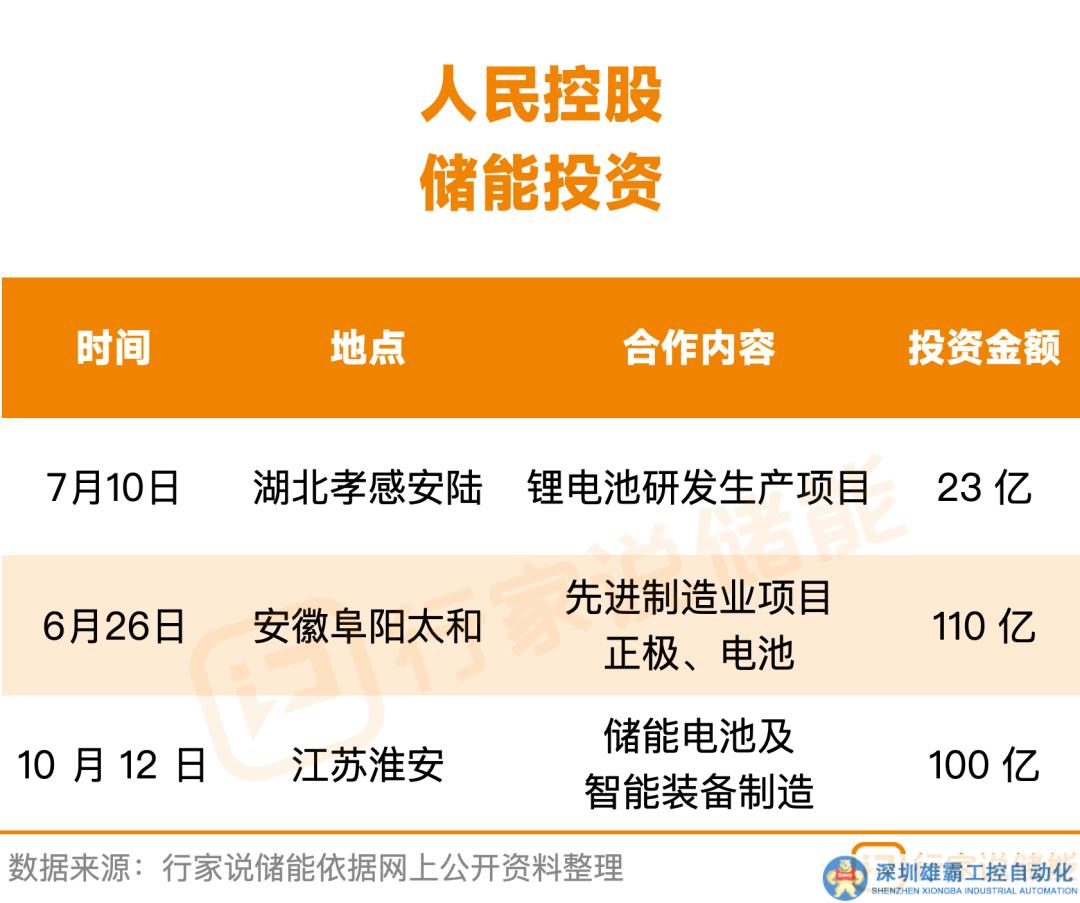 據(jù)悉,該項(xiàng)目總投資 100 億元,規(guī)劃產(chǎn)能 20GWh 的儲能電池及智能裝備制造等建設(shè)項(xiàng)目。這是今年以來人民控股投資的第二個超百億項(xiàng)目,也是第三個儲能相關(guān)項(xiàng)目。