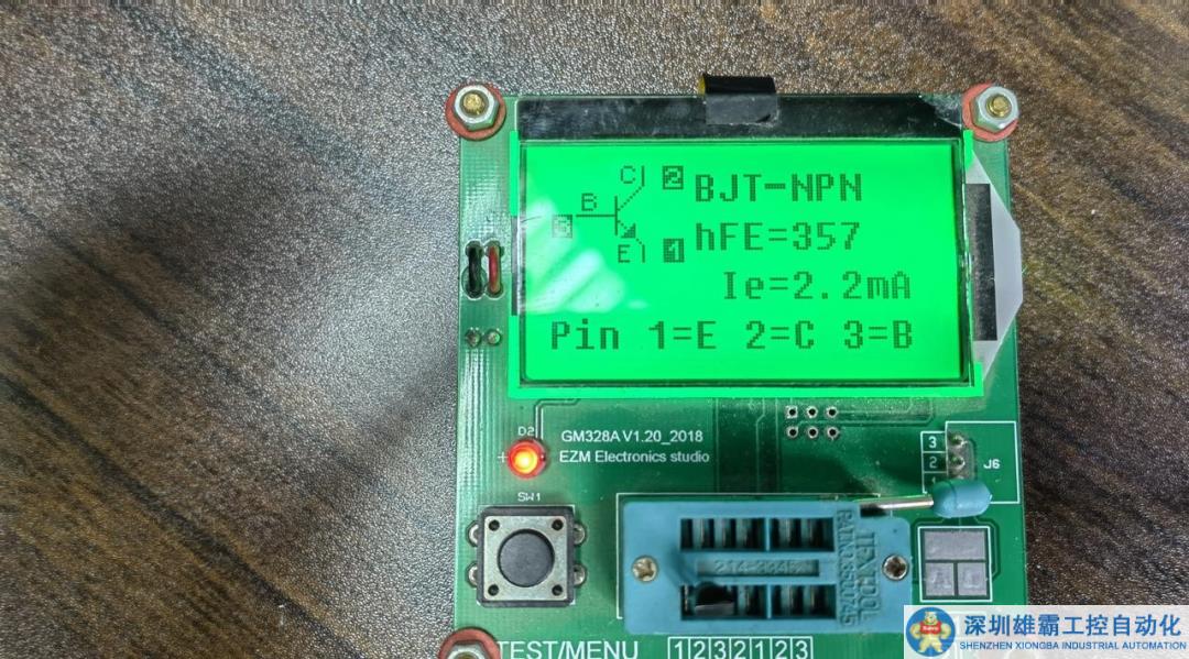 ??通過對手邊的 C1815晶體管測試,可以看到它的管腳分布與實(shí)物電路給出的是一致的。