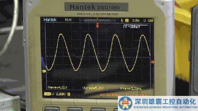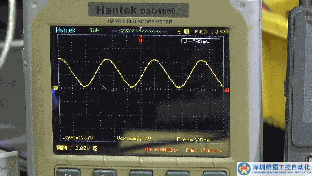 下面在電路板上搭建這個測試電路。這里先搭了移相正弦振蕩電路。沒有增加LED。下面測試一下現(xiàn)在電路是否能夠振蕩。施加工作電源為5V,這是三極管集電極電壓波形。沒想到,這個電壓波形還是非常純凈的正弦波。原本以為會有失真呢。頻率為 2.91Hz。