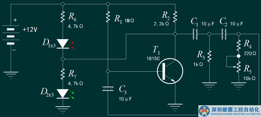 看到一個有趣的電路,使用單個三極管 1815C 構(gòu)成的一個低頻振蕩電路。下面分析這個實(shí)物構(gòu)成的電路功能。