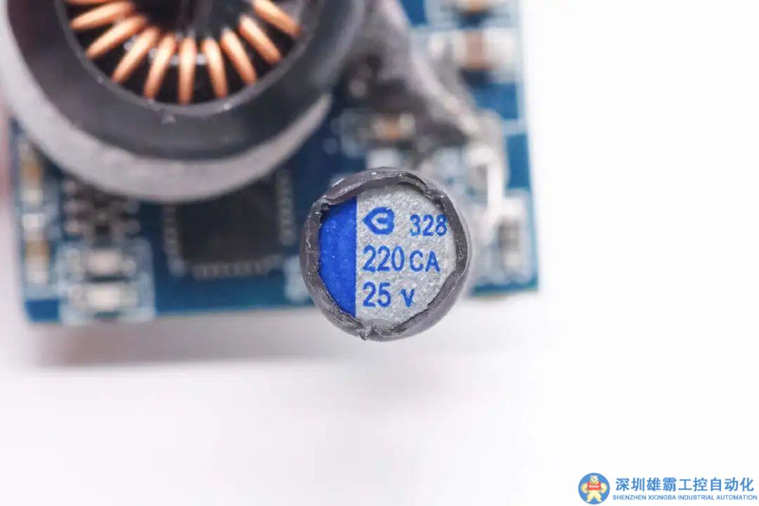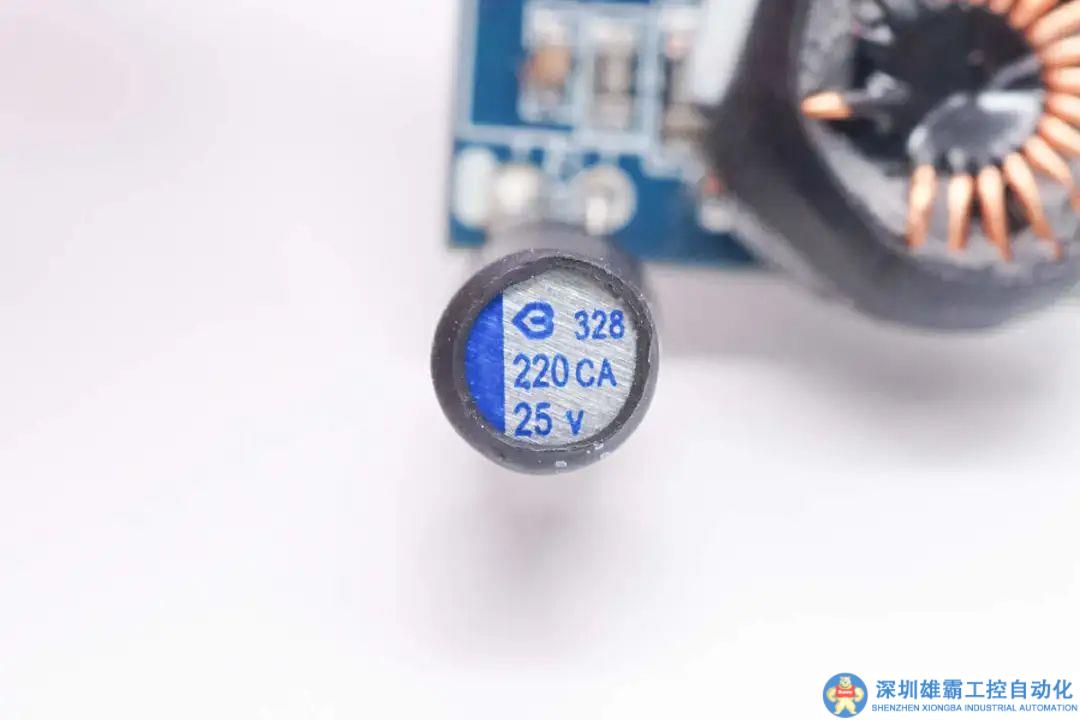 輸出濾波電容來自綠寶石,規(guī)格為220μF 25V,外套熱縮管絕緣。