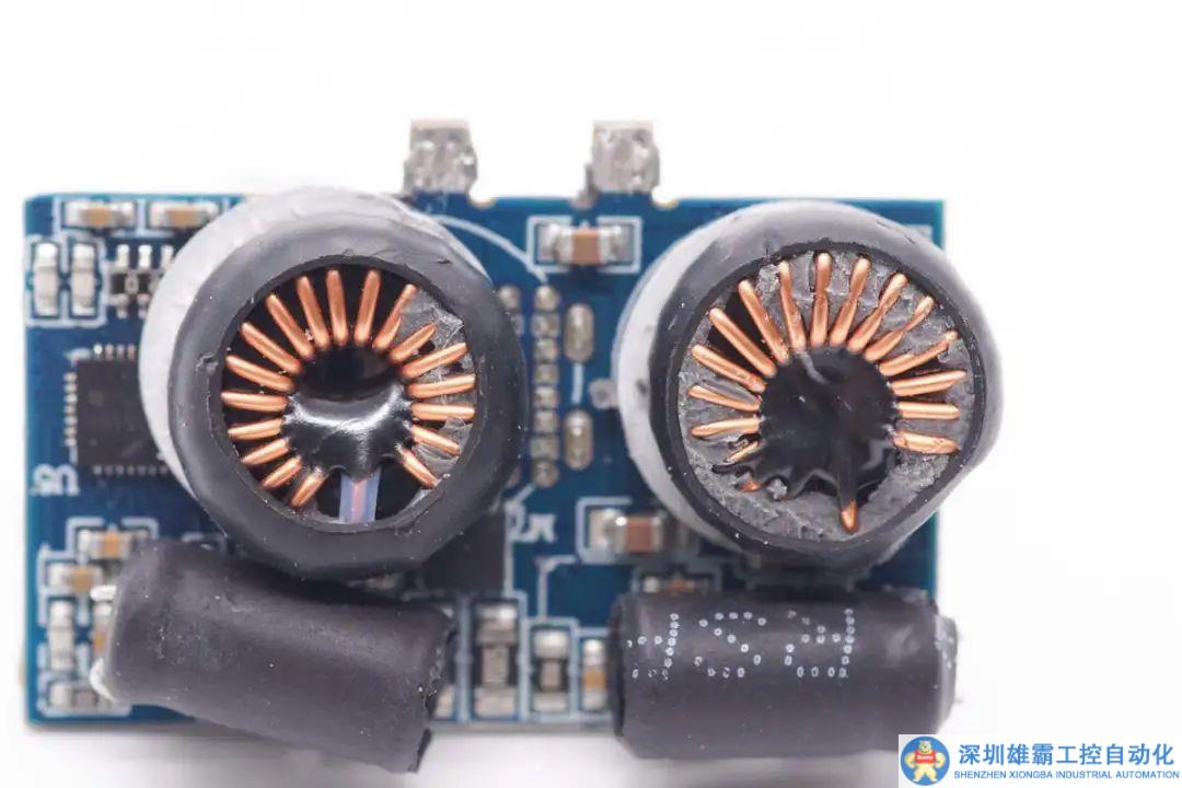 兩顆降壓電感特寫,與PCB之間使用塑料皮絕緣。