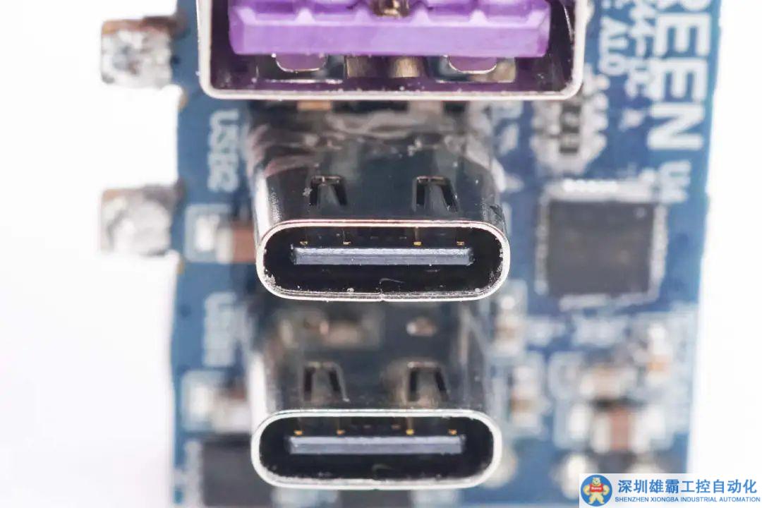 USB-C母座采用過孔焊接固定,黑色膠芯不露銅。