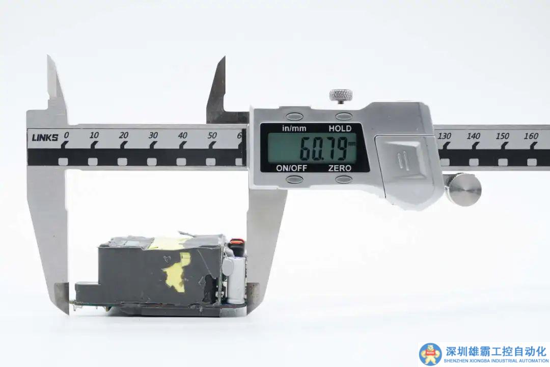 使用游標(biāo)卡尺測(cè)得PCBA模塊長(zhǎng)度約為60.8mm。