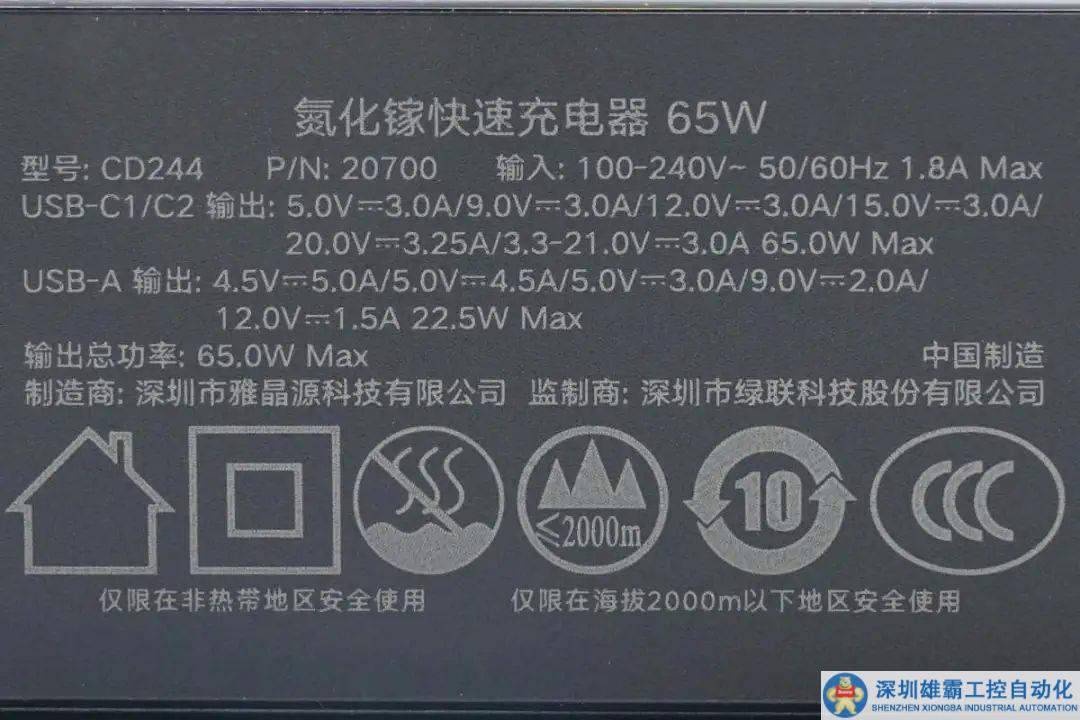 側(cè)面外殼印有充電器詳細(xì)參數(shù)。