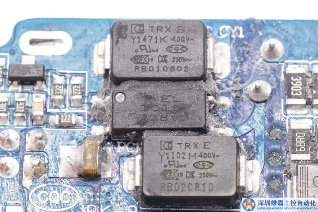 PCBA模塊側(cè)面焊接高壓濾波電容和NTC浪涌抑制電阻。