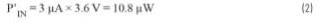 如果未恰當(dāng)選擇降壓轉(zhuǎn)換器,該轉(zhuǎn)換器消耗3 μA靜態(tài)電流(典型值),采用3.6 V輸入電壓,就會(huì)額外產(chǎn)生以下功耗: