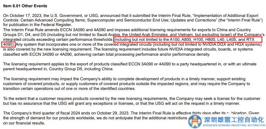 10月18日,英偉達(dá)(NVIDIA)依照上市公司規(guī)則提交了“8-K文件”,對于與其相關(guān)的限制政策及影響進(jìn)行了說明。