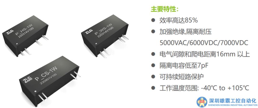 P_HS-1W、P_CS-1W、P_WS-1W是專門針對光伏、儲能、充電樁等高壓電源系統(tǒng)的應用場合而設計的,隔離電壓高達5000VAC或7000VDC,工作溫度范圍-40?℃?~105 ℃,P_CS-1W電氣間隙和爬電距離16mm 以上。為能量管理系統(tǒng)提供高可靠性的隔離電源,保障操作端的人身安全。