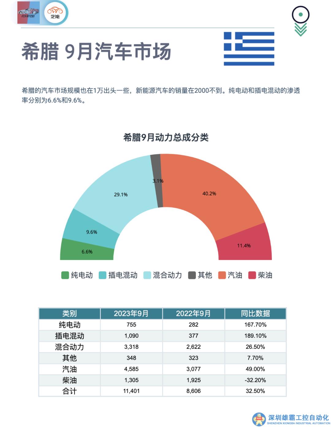 希臘汽車市場在2023年9月的總銷量達到11,401輛,同比增長32.5%。希臘汽車市場呈現(xiàn)出多樣性和活躍性。