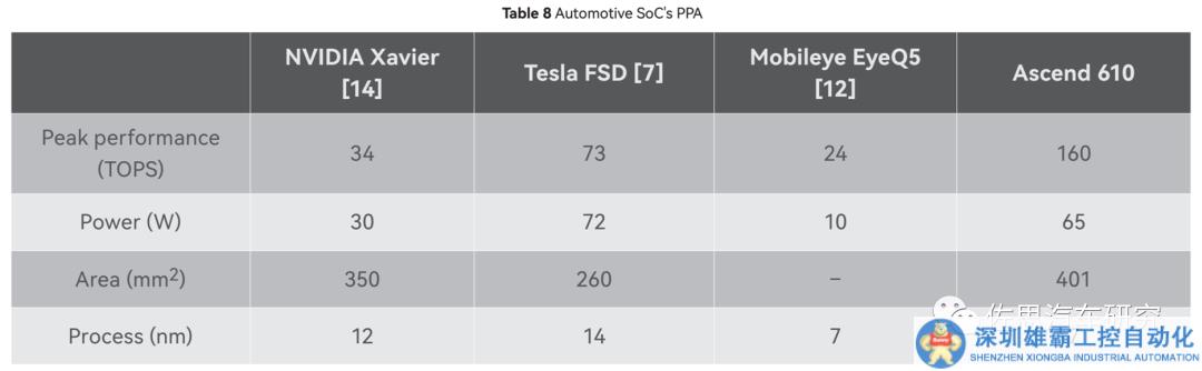 華為與其他智能駕駛芯片的對(duì)比