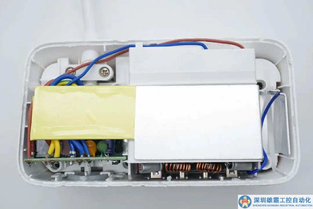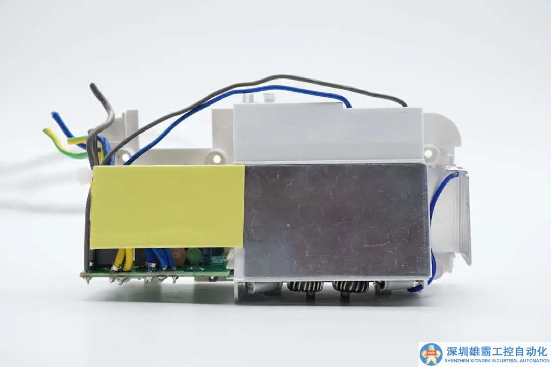 內部模塊覆蓋鋁制散熱片,對應供電控制的位置粘貼膠帶絕緣。