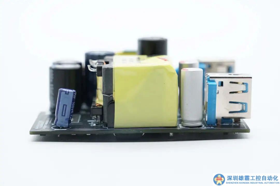 側面焊接電解電容,變壓器和固態(tài)濾波電容以及USB-A母座。