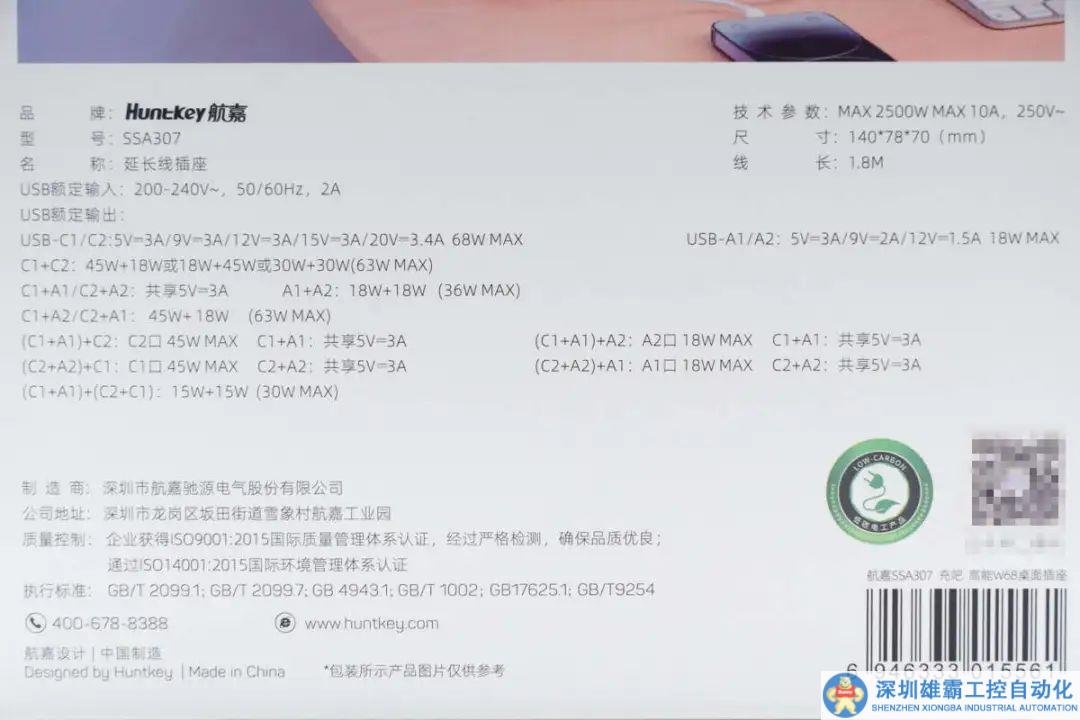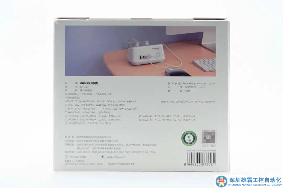 作為航嘉充吧高能系列的又一新品,從包裝盒到產品都延續(xù)系列相同外觀風格設計。這款的包裝盒正面印有Huntkey航嘉品牌、產品外觀以及名稱。